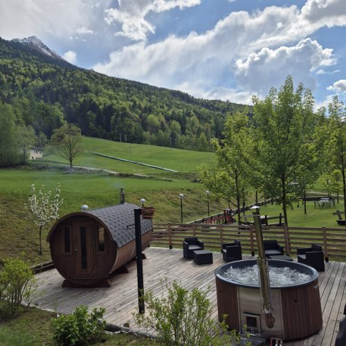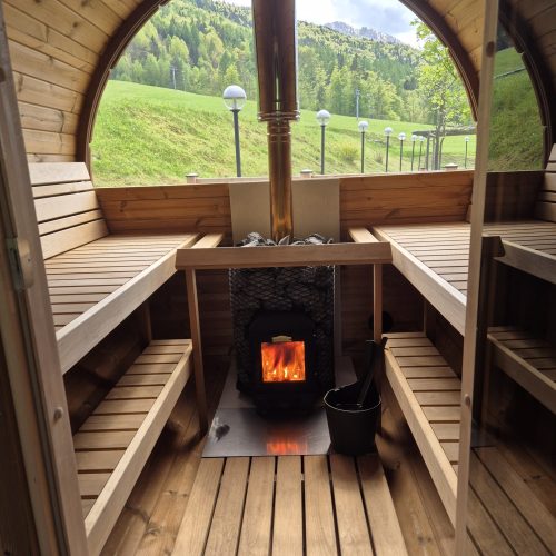 Un luogo tranquillo, destinato ai soli adulti, in cui vi sedurranno i profumi del legno e dei fiori, il crepitio del fuoco che riscalda l’acqua in cui vi potrete immergere, prenotando l’orario a voi preferito, anche in perfetta solitudine.