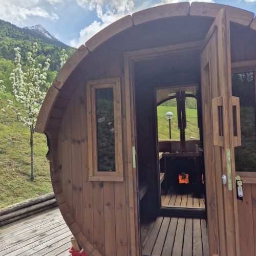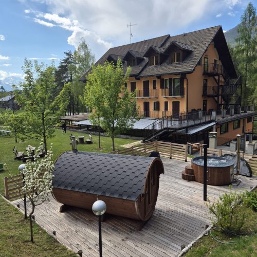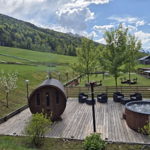 La nuova area wellness all'aria aperta è la nostra coccola riservata ai clienti dell'hotel: una moderna sauna a botte e la tinozza idromassaggio riscaldate a legna, un comodo salottino relax. Il tutto con vista sul verde delle splendide montagne della Valle Vigezzo. Da provare, che dite?