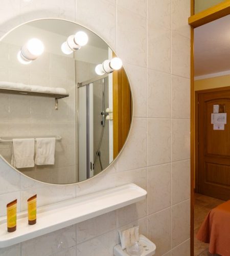 L’accogliente Doppia Superior può ospitare due persone, con ampia doccia, terrazzo e balcone, tv 43 pollici, frigobar, cassaforte con prese di ricarica USB.